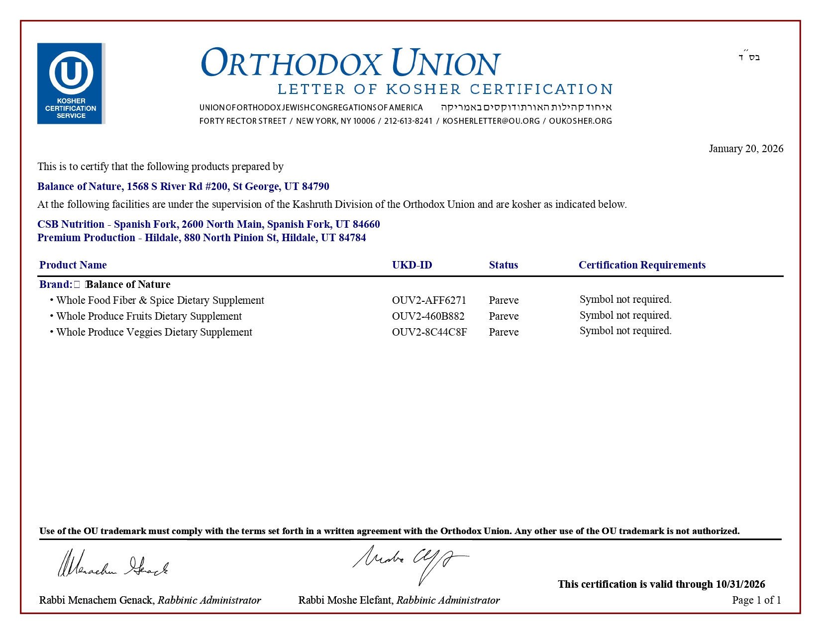 Is Balance of Nature Kosher?Updated 2 months agoYes! All three Balance of Nature supplement products are OU Kosher Certified and are on ourwebsite. Was this article helpful? YesNo